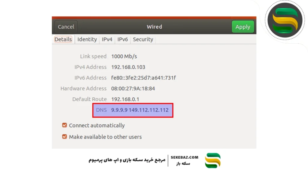 - DNS دوم: ۴۶.۲۲۵.۲۲۳.۱۴۲ (DNS ایرانی با پینگ پایین)
