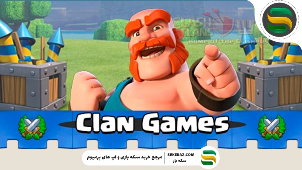 - Clan Games (کلن گیمز) رویدادی هستند که اعضای یک قبیله با هم مشارکت میکنند تا چالشهایی مختلف مثل تخریب ساختمانها، ارتقاها، استفاده از سربازان خاص و … را انجام دهند و امتیاز جمع کنند.